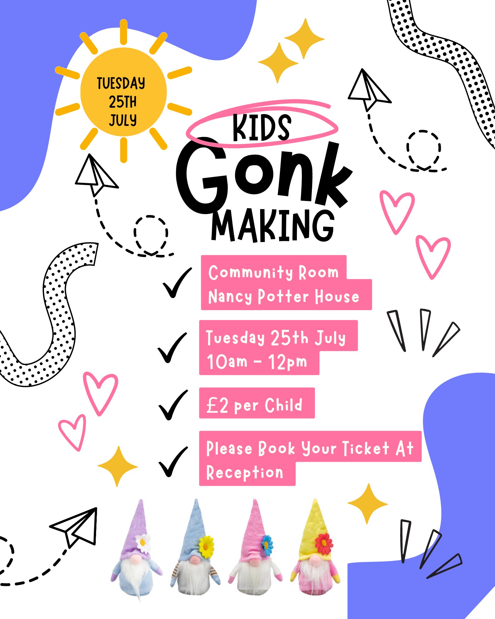 Come and join us at Nancy Potter House with Lyn who will show you how to make and create Gonks - Great as a little gift to friends and family! £2.