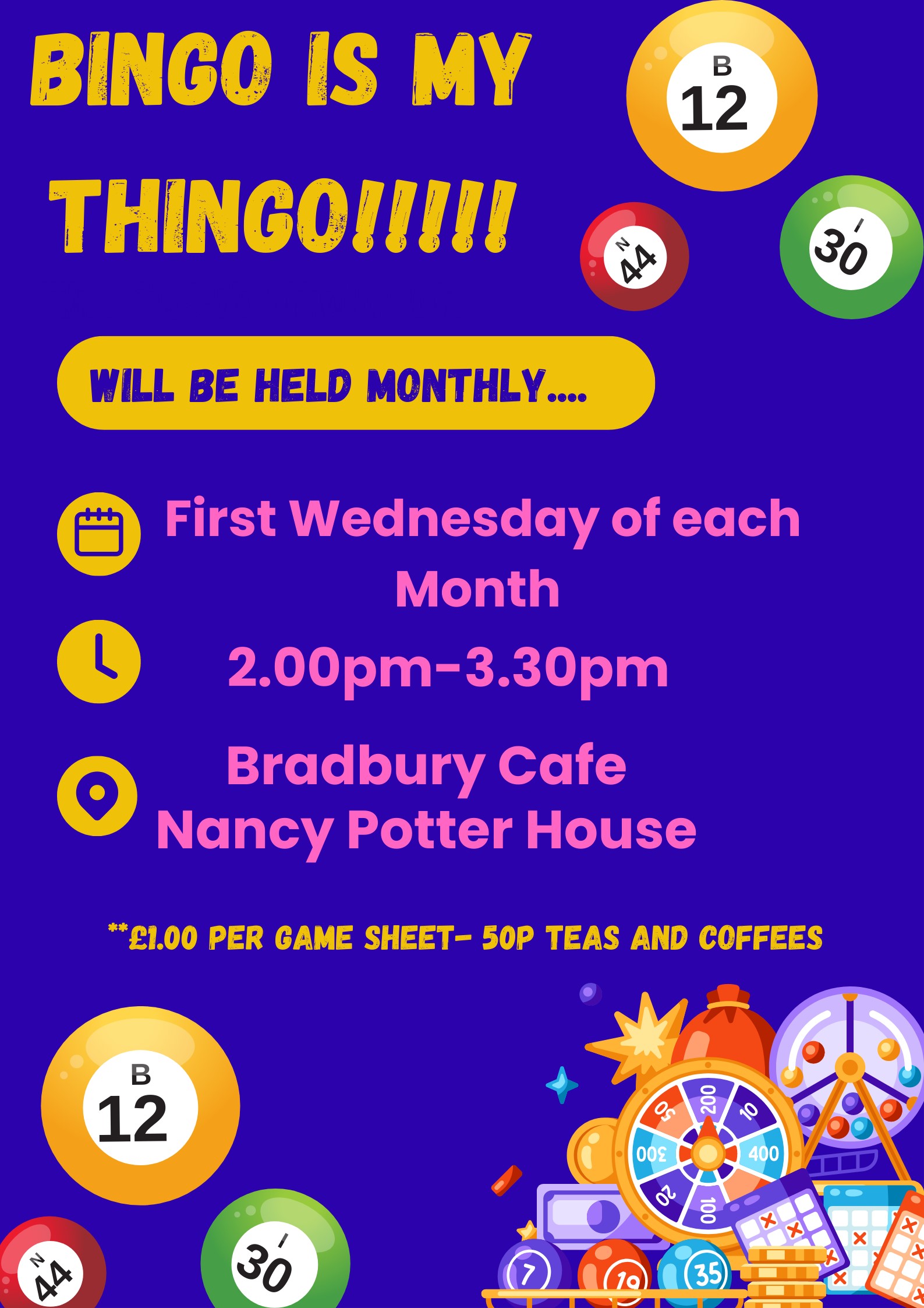 Join us in the Bradbury Cafe for Monthly Bingo with Lyn Eyes Down at 2.