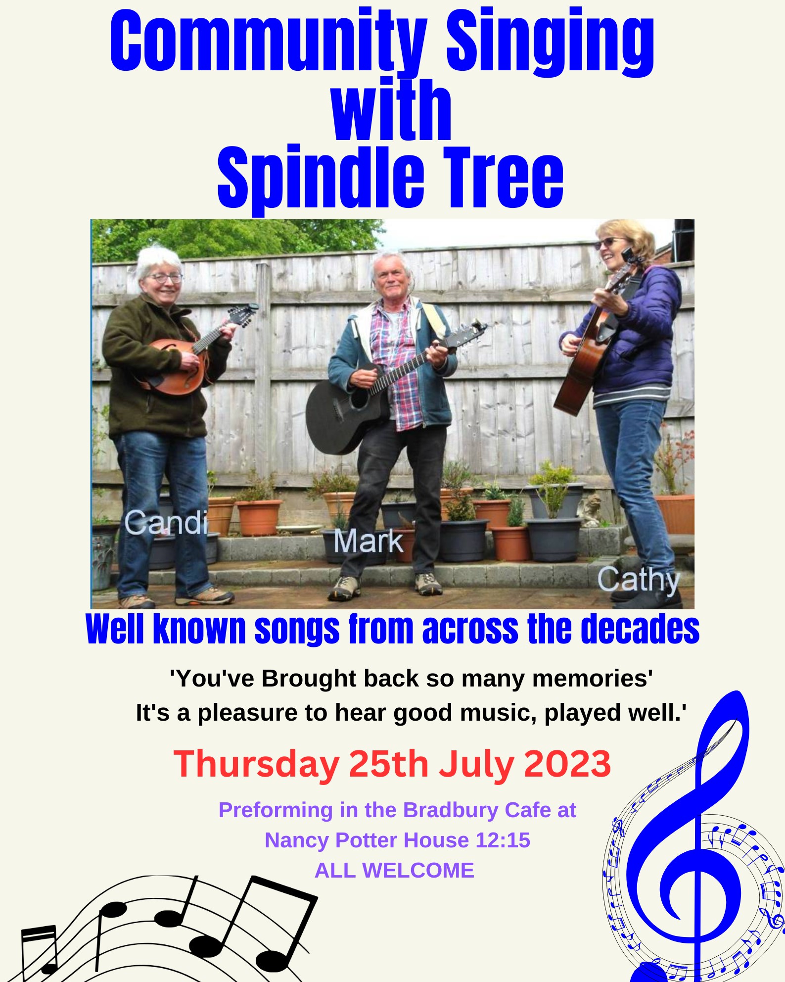 Candi, Mark and Cathy from Spindle Tree bring their instruments and perform well known songs from across the decades Free to attend Held in the Bradbury Cafe from 13.15 to 2pm Read more