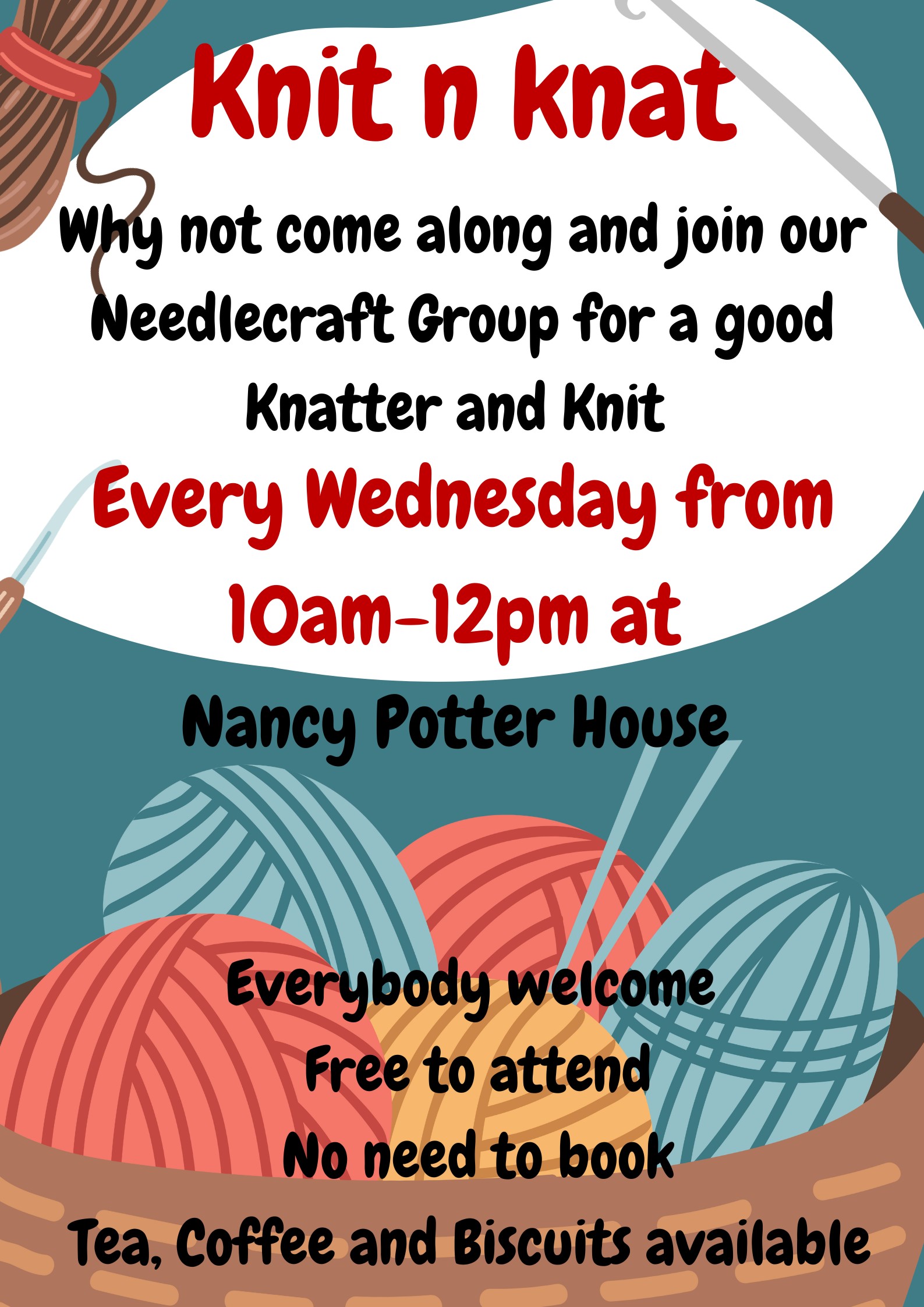 Held in the Bradbury Cafe - come and share and learn new skills in knitting, sewing, crocheting and other forms of craft.