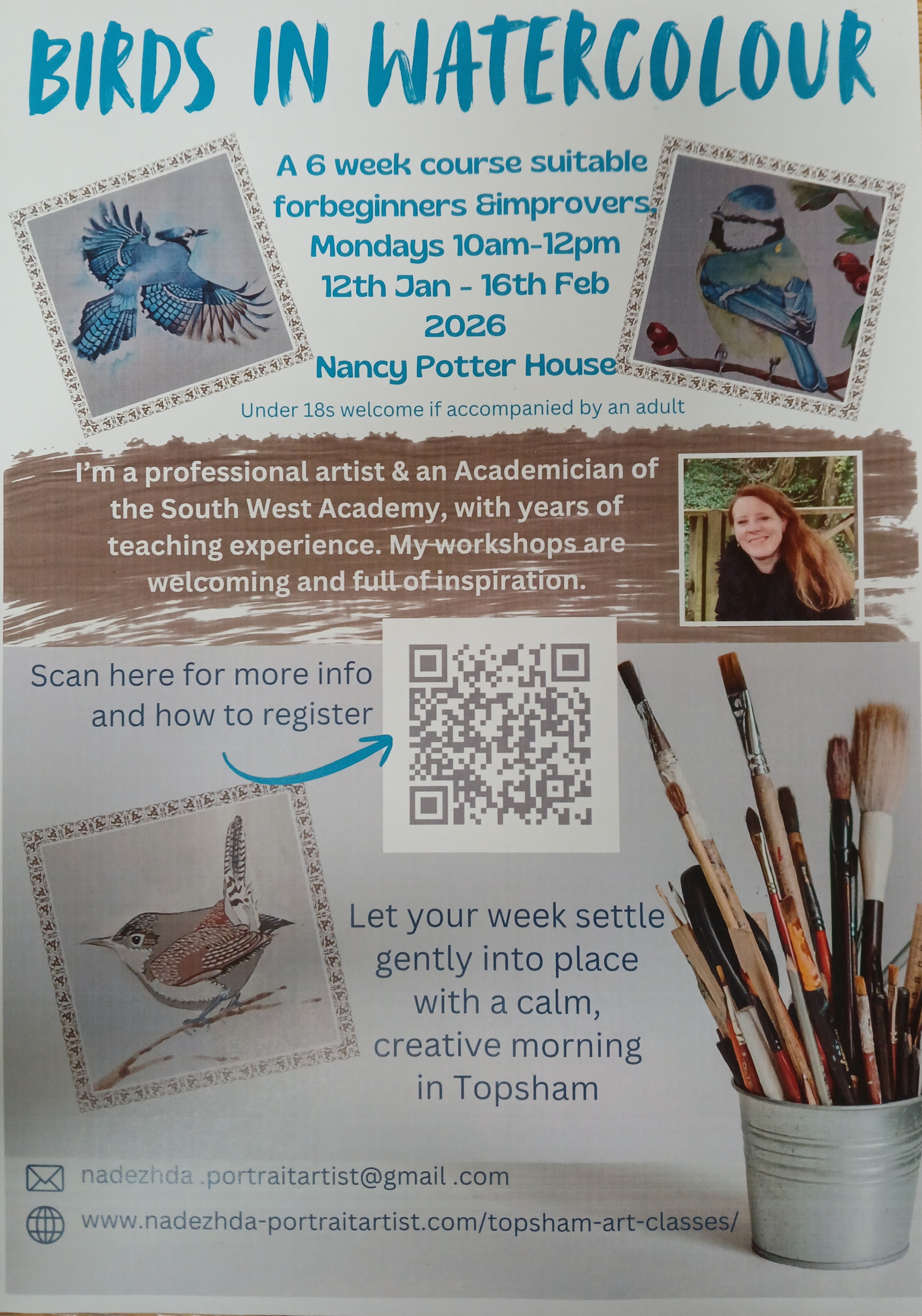 Join professional artist and teacher Nadezhda for a 6 week course, learning how to paint birds in watercolour.